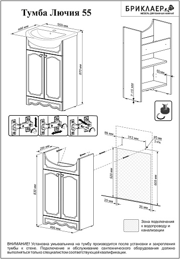 Бриклаер Тумба с раковиной Лючия 55 белая