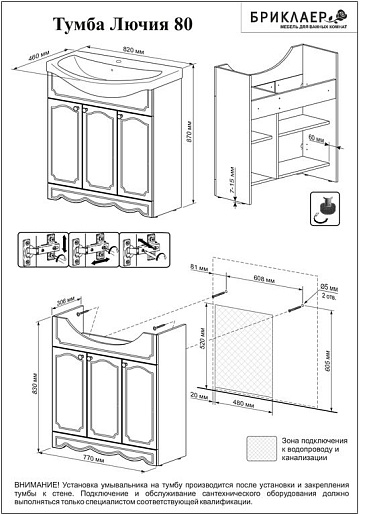 - тумба под раковину Бриклаер Лючия: распашная дверца - 3 шт., ручка - 3 шт.