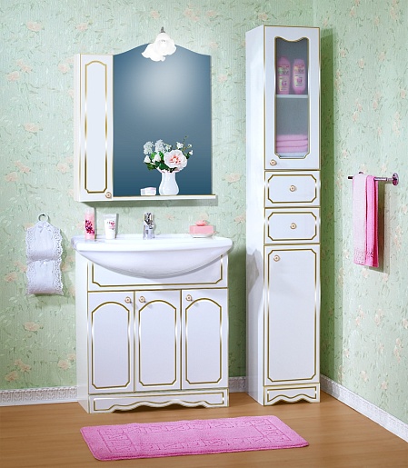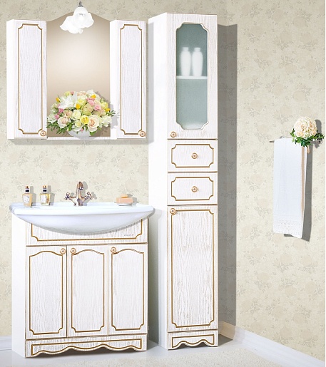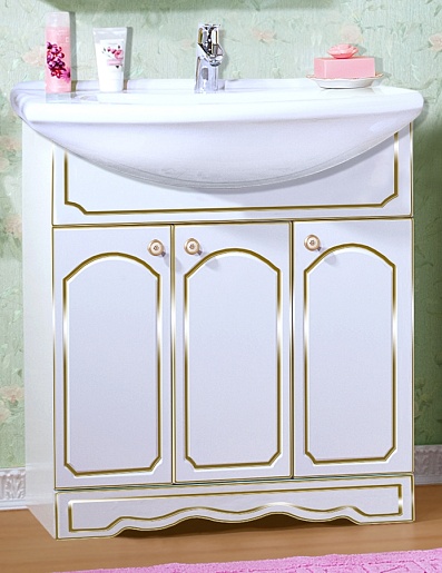Тумба для умывальника Лючия 80 белый глянец/золото