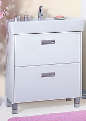 - напольная тумба под раковину: выдвижной ящик - 2 шт, металлические врезные ручки, ножки