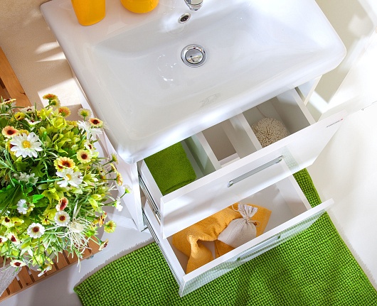 - подвесная тумба под раковину: 2 выдвижных ящика, металлические врезные ручки