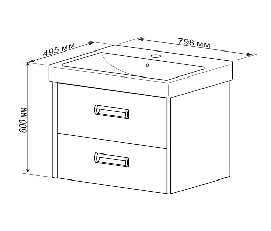 - подвесная тумба под раковину: 2 выдвижных ящика, металлические врезные ручки