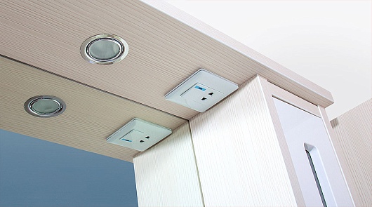 - закрытый шкаф с полками, декорированый стеклянной вставкой - 2 шт.