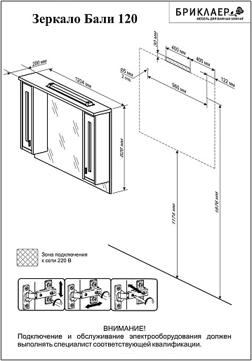 Бриклаер Зеркальный шкаф Бали 120 светлая лиственница