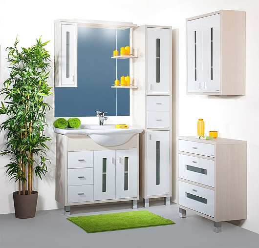 - закрытый шкаф с полками, декорированый стеклянной вставкой