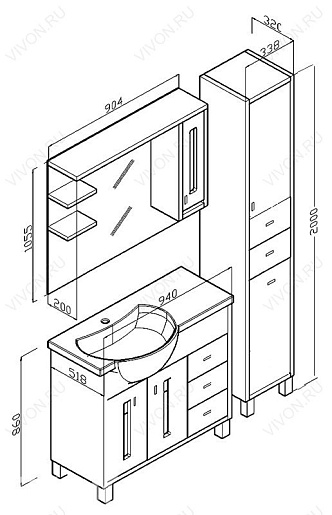 Размеры ШхГхВ: 904х200х1055 мм
