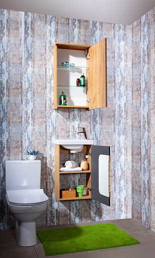 Бриклаер Зеркальный шкаф Форест 40 дуб золотой/антрацит