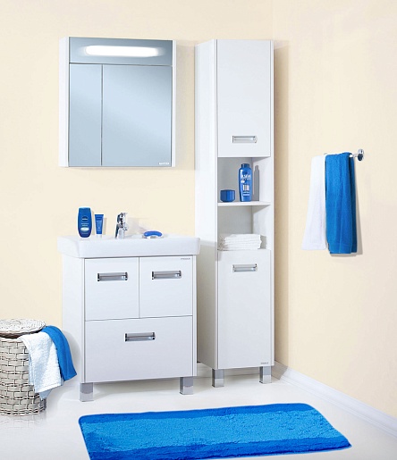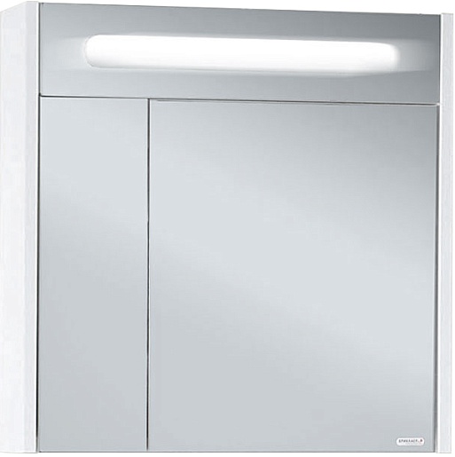 Описание: зеркальный шкаф для ванной с распашными дверцами и внутренней полкой. Встроенный люминисцентный светильник 6 Вт.