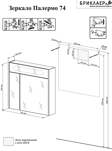 Бриклаер Зеркальный шкаф Палермо 74