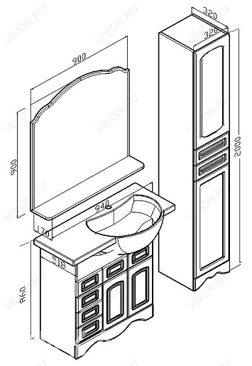 Коллекция мебели для ванной Анна воплощение классического стиля. Декоративная фрезеровка фасадов, дорогая фурнитура из фарфора подчеркивают аристократичный вид мебели. Два светильника классического дизайна подсвечивают зеркало. В верхней распашной дверце пенала Анна матовое стекло, а в нижнем отделении расположилась бельевая корзина.