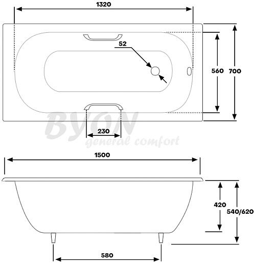 Byon Чугунная ванна BYON 13 150 см с ручками