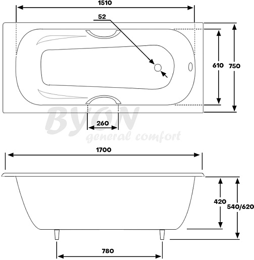 Byon Чугунная ванна BYON 15 170 см с ручками