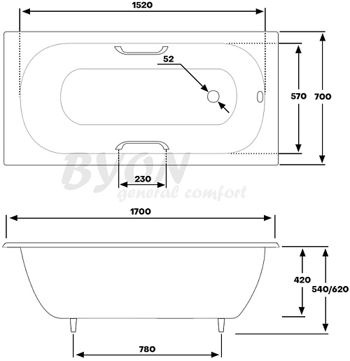 Byon Чугунная ванна BYON B13 170 см с ручками