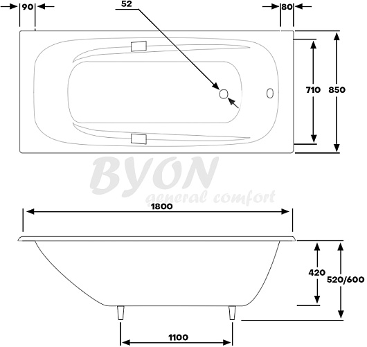 Чугунная ванна Byon IDE 180x85 - арт. Н0000369.