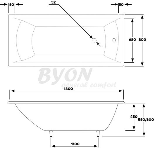 Чугунная ванна Byon Milan 180x80 - арт. Н0000372.