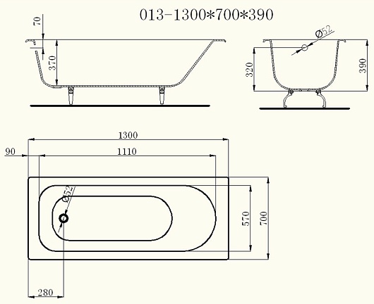 Чугунная ванна Castalia 130x70x39: