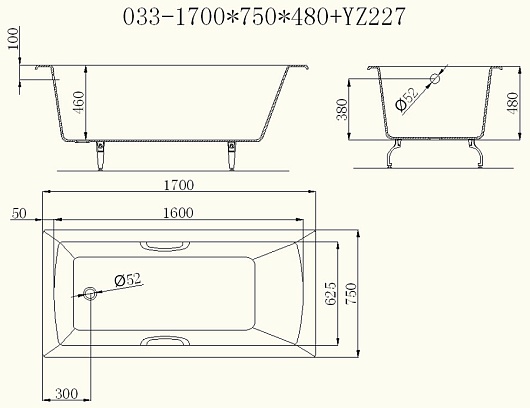 Чугунная ванна Castalia Prime 170x75x48 с ручками: