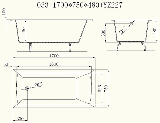 Castalia Чугунная ванна Prime 170x75x48