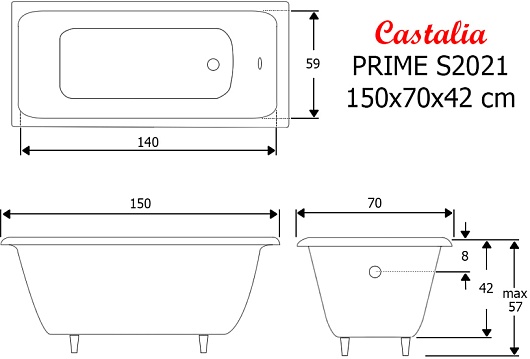 Чугунная ванна Castalia Prime S2021 150х70х42 см: