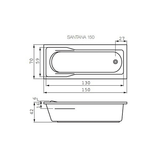 Cersanit Акриловая ванна Santana 150 ультра белая
