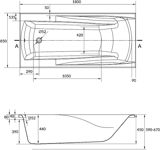 Комплектация: ванна.