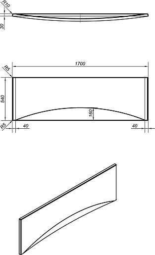 Экран для ванны Virgo/Intro 170 ультра белый - арт. PA-VIRGO*170-W.