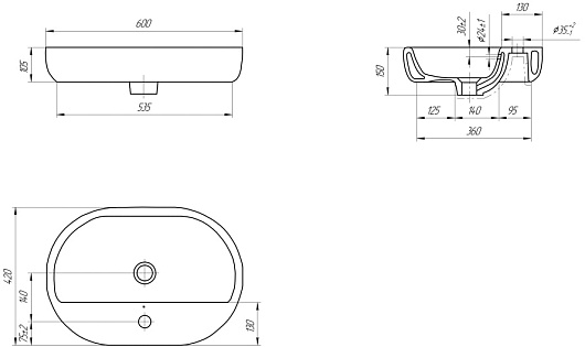 Накладная раковина Cersanit Caspia 60 Oval - арт. S-UM-CAS60/1-O-w.