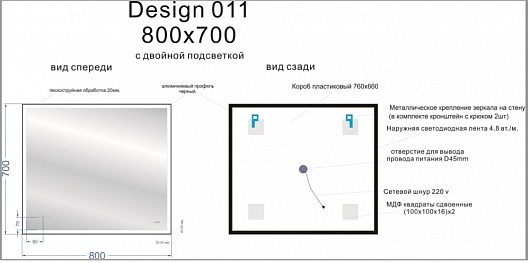Зеркало Cersanit Led 011 design 80x70 - арт. KN-LU-LED011*80-d-Os.