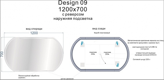 Комплектация: зеркало, комплект креплений.