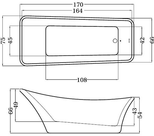Акриловая ванна Cerutti Spa Tesino 170x75 - арт. CT8338 (8338).