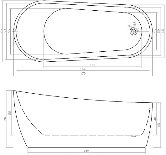 Акриловая ванна Cerutti Spa Viva 170x75 - арт. СТ9127 (9127).