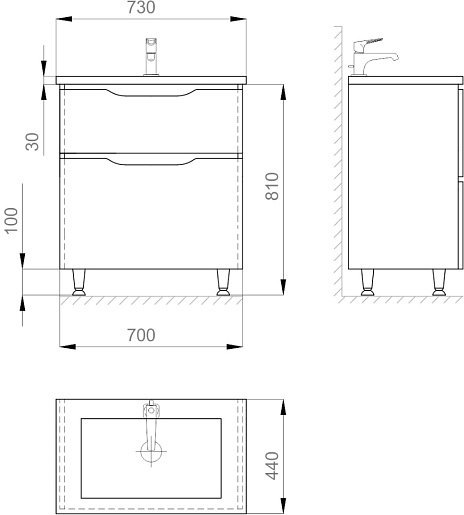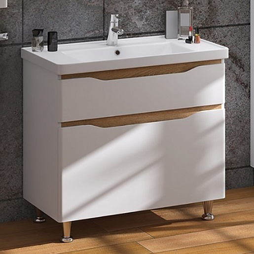 В комплекте: тумба, раковина, зеркало, ножка (4 шт.).