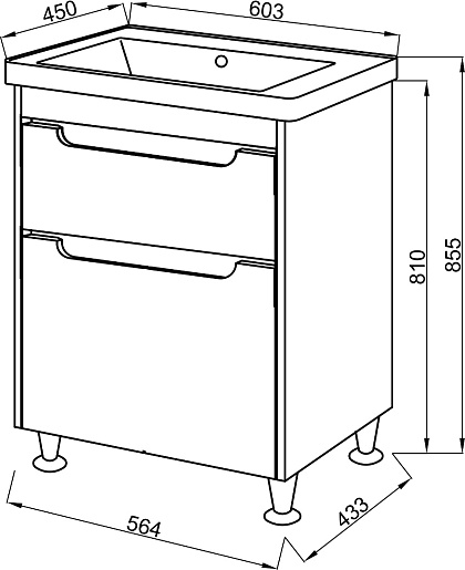 В комплекте: тумба, раковина, зеркало, ножка (4 шт.).