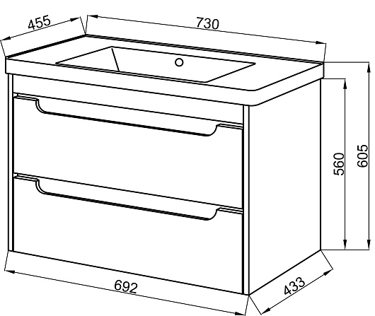 - Тумба Эмилия white 70, два выдвижных фасада, доводчики.