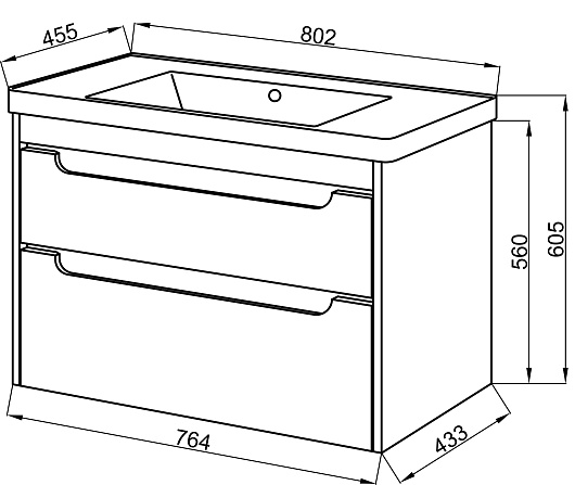 - Тумба Эмилия white 80, два выдвижных фасада, доводчики.