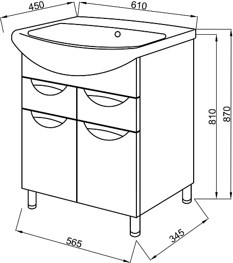- 2 ящика, 2 дверцы.