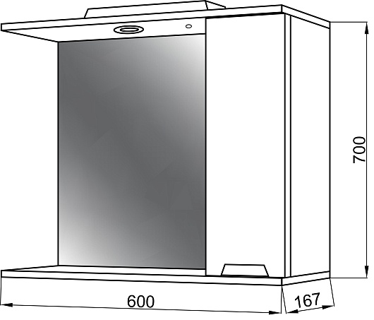 - Зеркало Ломбардия 60 правое, влагостойкое зеркальное полотно, шкафчик, подсветка.