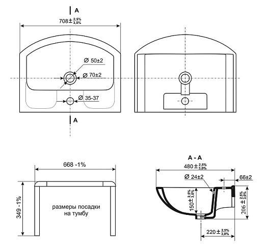- Раковина Изео 70, керамика, белая.