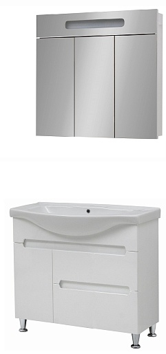 - Зеркало-шкаф Ломбардия 90, влагостойкое зеркальное полотно, шкафчики, подсветка.