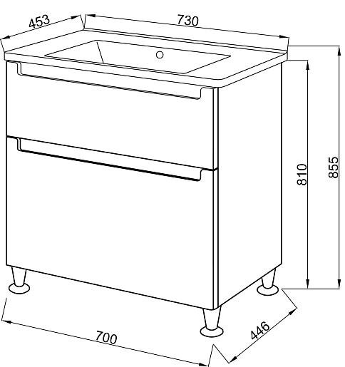 - Тумба Пьемонт 70, два выдвижных фасада, доводчики.