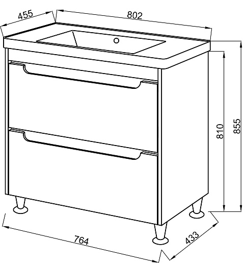 - Тумба Эмилия grey 80, два выдвижных фасада, доводчики.