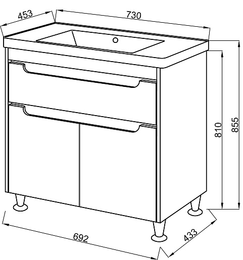 - Тумба Эмилия white 70, два распашных фасада, доводчики.