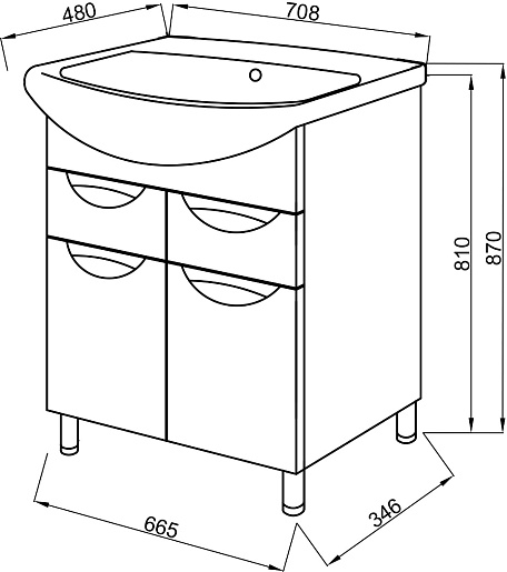 - 2 ящика, 2 дверцы.