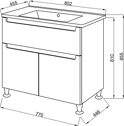В комплекте: тумба, раковина, ножка (4 шт.).
