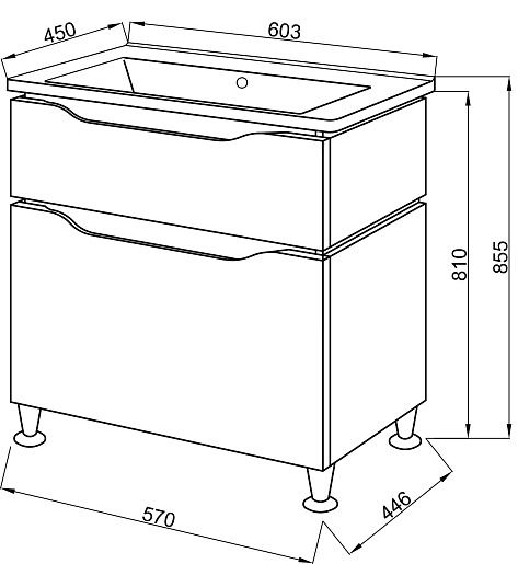 - Тумба Сицилия 60, два выдвижных фасада, доводчики.
