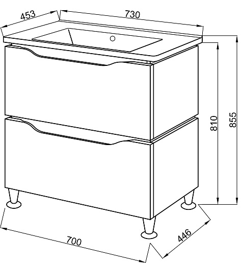 - Тумба Сицилия 70, два выдвижных фасада, доводчики.