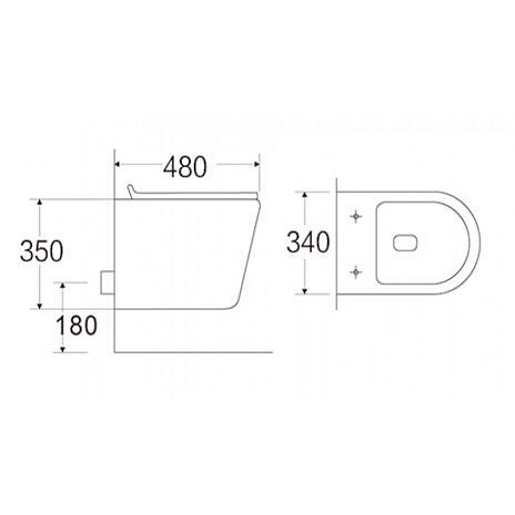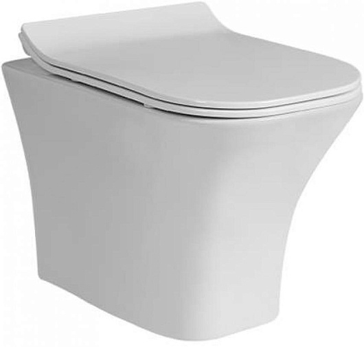 - Безободковый подвесной унитаз из фаянса.
