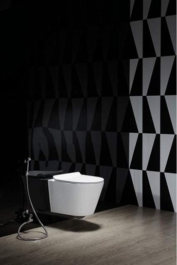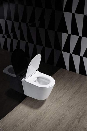 - Безободковый подвесной унитаз из фаянса.