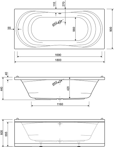 Акриловая ванна Cezares Apollo 180x90 - арт. APOLLO-180-90-49.
