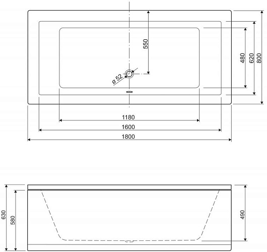 Акриловая ванна PLANE 180x80